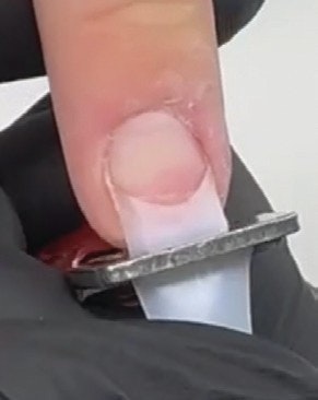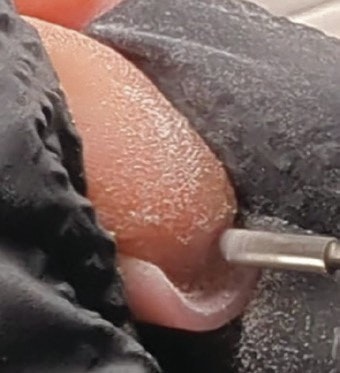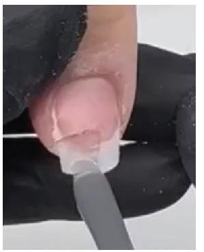 Step 2 Carefully assessing the hyponychium, file and correct the shape, being careful not to compromise the health of the natural nail.
