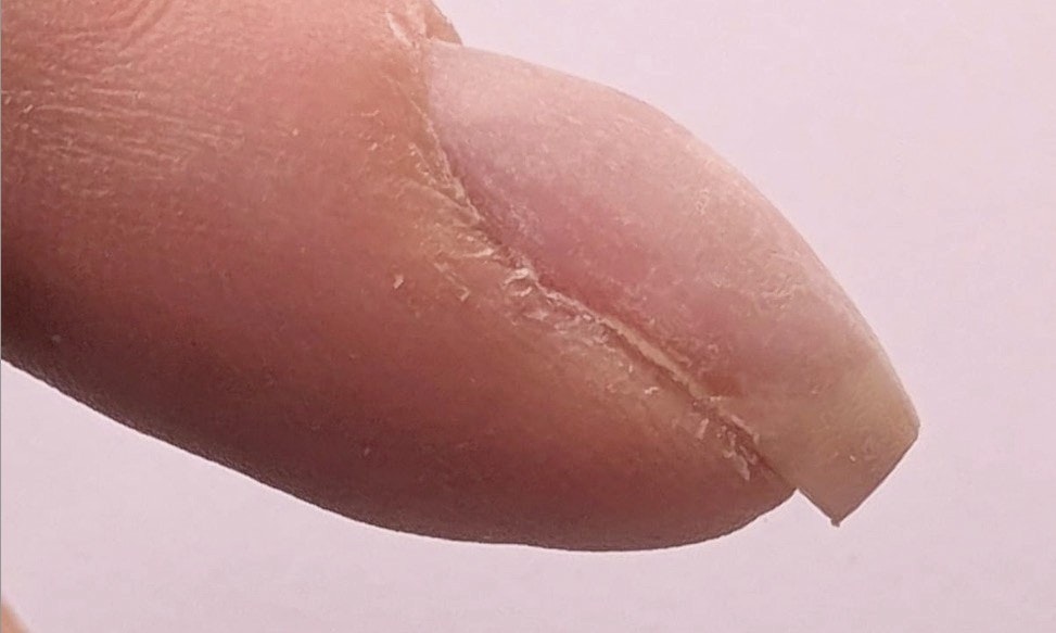 Cause: This is when the gel starts peeling away from the natural nail and is usually a result of poor nail prep. If there is any oil, moisture or non-living tissue left on the nail, the gel won’t adhere properly.