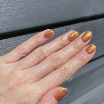 Rebecca took a trip to Orpington salon, Trendy Beauty, for her Scratch Stars Party mani. She opted for a gold glitter gel polish overlay courtesy of beauty therapist, Grace.