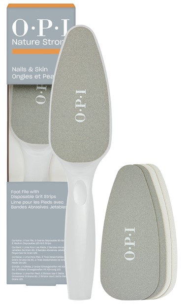 Also available is the OPI Nature Strong Nails & Skin Dual-sided Foot File with Disposable Grit Strips (80 and 120-grit).