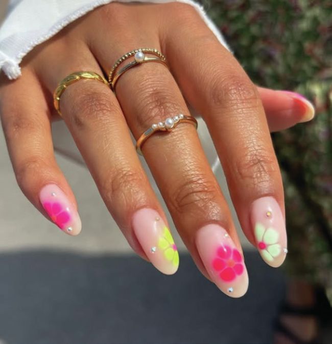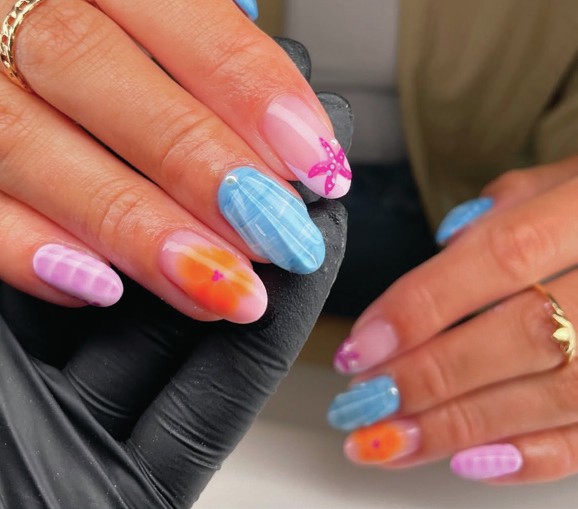 A summer-friendly design by Ashlee Drew, created using blooming gel.