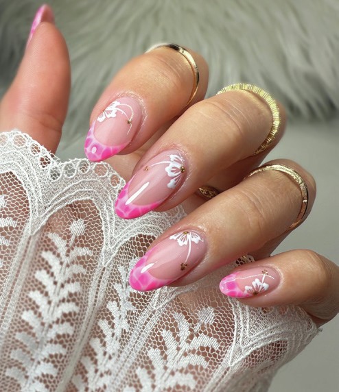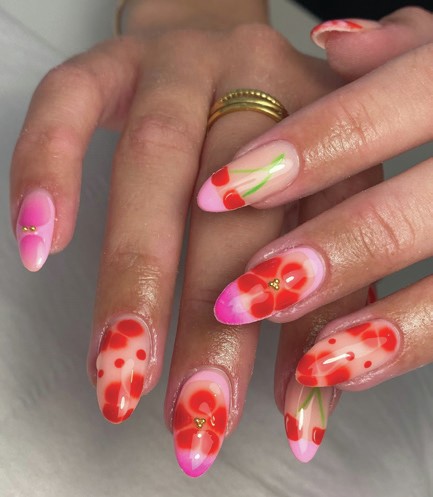 The design technique is surging in popularity, says Halo VIP, Ashlee Drew. “Blooming gel is popular due to its versatility,” she notes. “Around 80% of the nail designs my clients show me for inspiration can be created using blooming gel.”