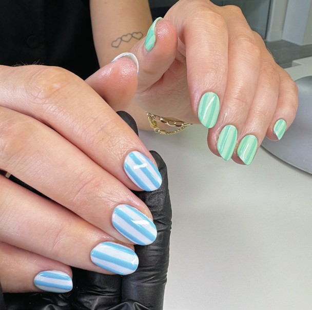 “I’ve seen stripes on nails a lot this summer, and believe this offers a fun way to incorporate bright shades into nail art,” says Mii pro ambassador, Hayley Rogers. “The look nods to holidays and trips to the seaside.”