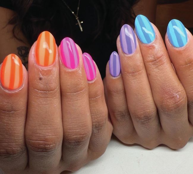 This multi-coloured striped design was created by Indiana-based nail artist, Gracin Jessup.