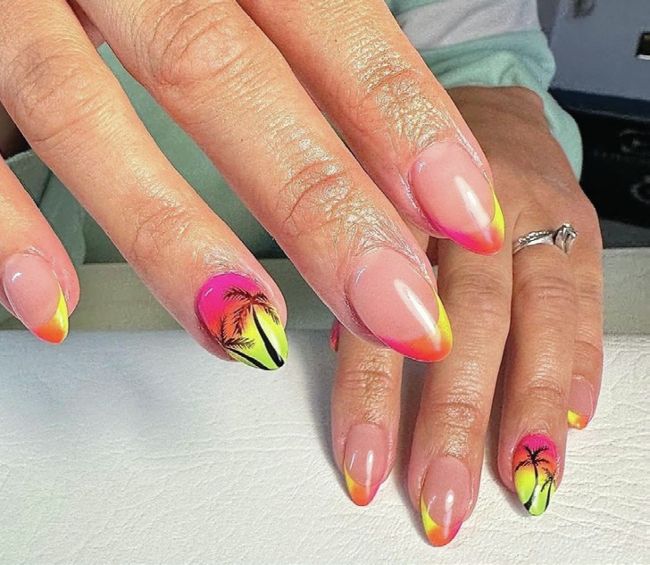 Ombré effects are showcased in this tropical nail design by Charlotte Edwards.