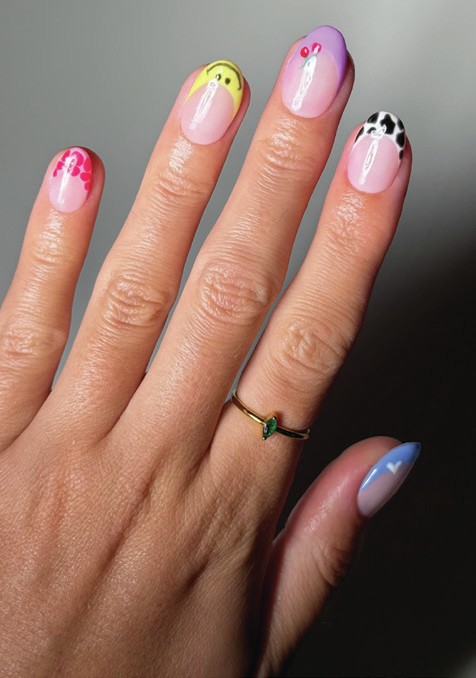 The team at 14 Day Mani created this fun and festival-ready mix ’n’ match design using the brand’s Gentle Gels™ HEMA-free product range.