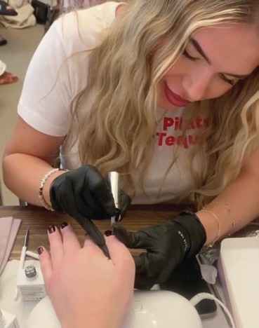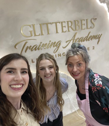 Jess Watts took her first official steps into nail tekking at Glitterbels HQ in Stoke-on-Trent, training in gel polish application under the guidance of Scratch Stars Hall Of Famer, Danielle Brindley – who is also part of the multi award-winning Glitterbels Education Team. Jess learned how to prep nails, apply and remove gel polish and craft a French finish. Rebecca supported by capturing content of her progress and you can read all about their visit on page 64.