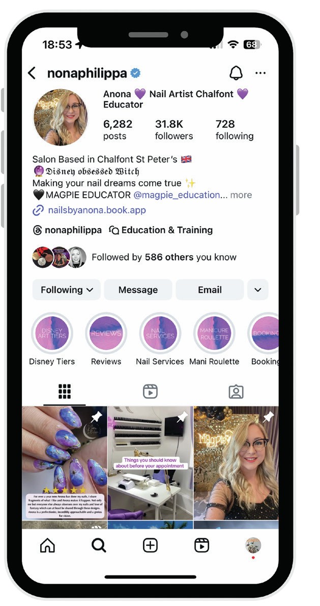 Anona Grice is a nail artist & educator based in Chalfont St Peter, Buckinghamshire. She started her nail business in 2013 and is salon-based, with a penchant for Disney, dragons and celestial designs. She is incredible at taking an idea and bringing it to life on nails. Follow her on