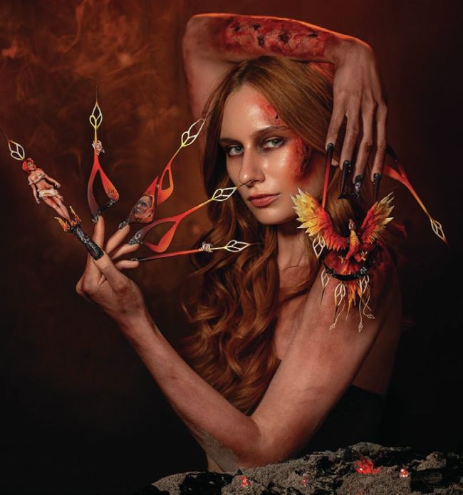 “Nail professionals should be aware that behind every extreme competition entry, there is a lot of practice and experimentation,” notes Melinda Tamás. “When a theme is set as the guideline for all participants, competitors’ goals should be to create the most spectacular, imaginative results, thinking of their looks as full concepts. The competition rules and scoresheets should be read thoroughly to prevent points being deducted.”