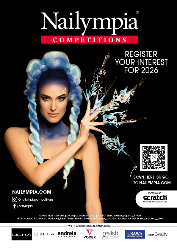 The Nailympia Competitions 2025 global campaign imagery is courtesy of: Nails: Elena Popova @popovaelena_nfp Photographer: Elena Gelberg @pena_litrova Make-up artist: Varvara Tabutarova @varvara_tabu Hair stylist: Ksenia Golubeva @ksenja_golubeva Model: Alina Philipskaya @alina__0606