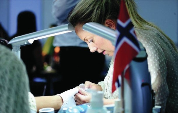 Industry accolades: I have attained 14 gold medals over eight years in the Norwegian Championship for acrylic and gel; two gold medals in both the Scandinavian and Nordic Championships; one gold medal in the Swedish Championship; four gold medals at Nailympia London, one team gold medal (Nailympia); two silver and three bronze medals at the International Nail Championship Düsseldorf, and four silver and six bronze medals in various competitions around the world.