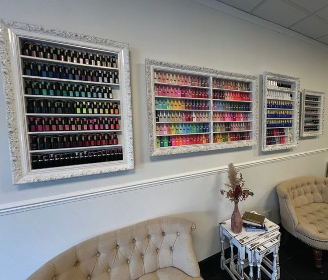 The salon owner is joined in the beauty space by fellow nail pro, Angela, who she says she would ‘be lost without’. Both techs offer a variety of treatments, including pedicures and builder gel and L&P acrylic enhancements. They work with brands including OPI, Navy Professional, VINA, Kinetics, The GelBottle Inc, NSI and Swarovski. “We believe it’s important to use high-quality products,” Aysana says. “We also have a Vodex SalonAir dust collector to support the health of our team and clients.”