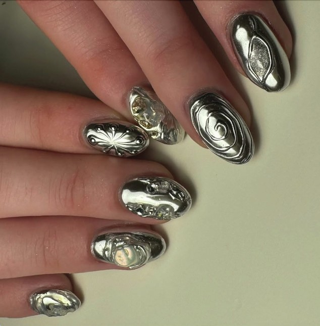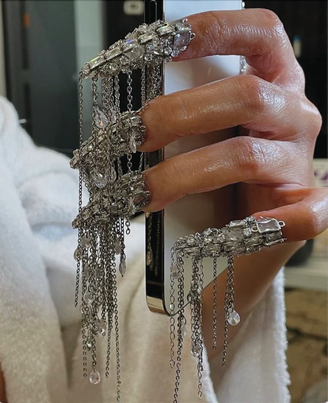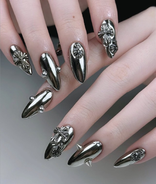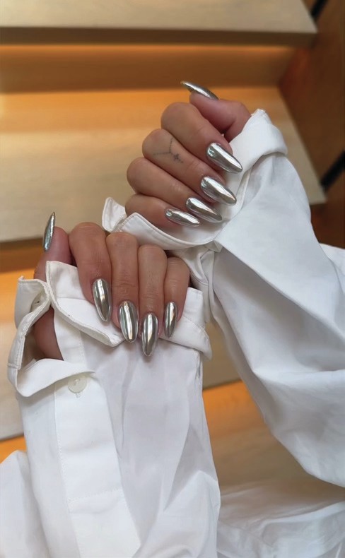 Celebrities are also hopping on the silver nail trend, showcasing striking styles.