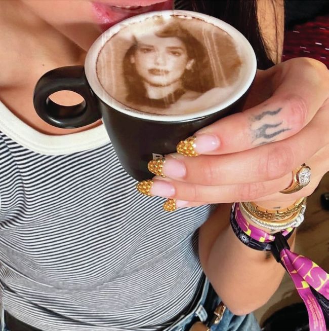 Singer, Dua Lipa, showcased a twist on the French manicure, with 3D gold embellishments adorning the tips of her nails for Sunny Hill Festival. The look was crafted by London-based session stylist, Michelle Humphrey (@nailsbymh).