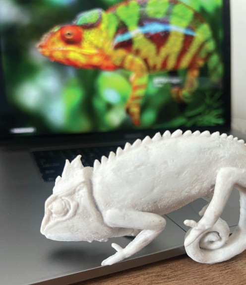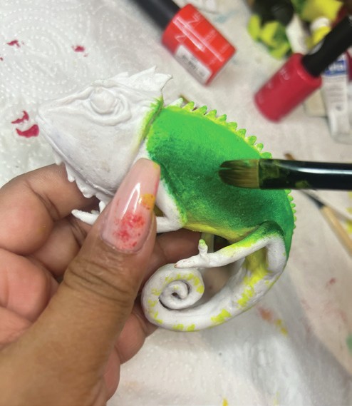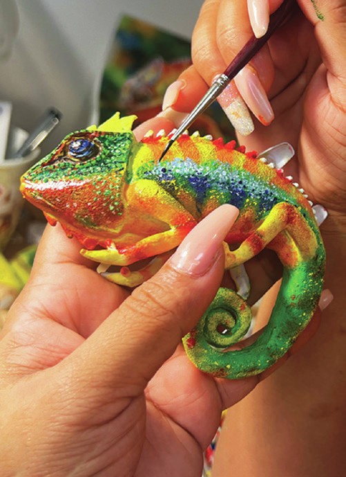 “I hand-sculpted the chameleon using L&P acrylic, carefully building the layers using a fine brush. It was a slow, detailed process that demanded patience.”