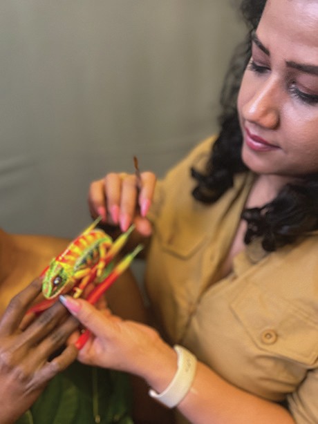 Nail artist, educator & Nail Art Academy founder, DINUPA JAYASOORIYA, shares her love of fantasy nail art through the creation of an acrylic chameleon
