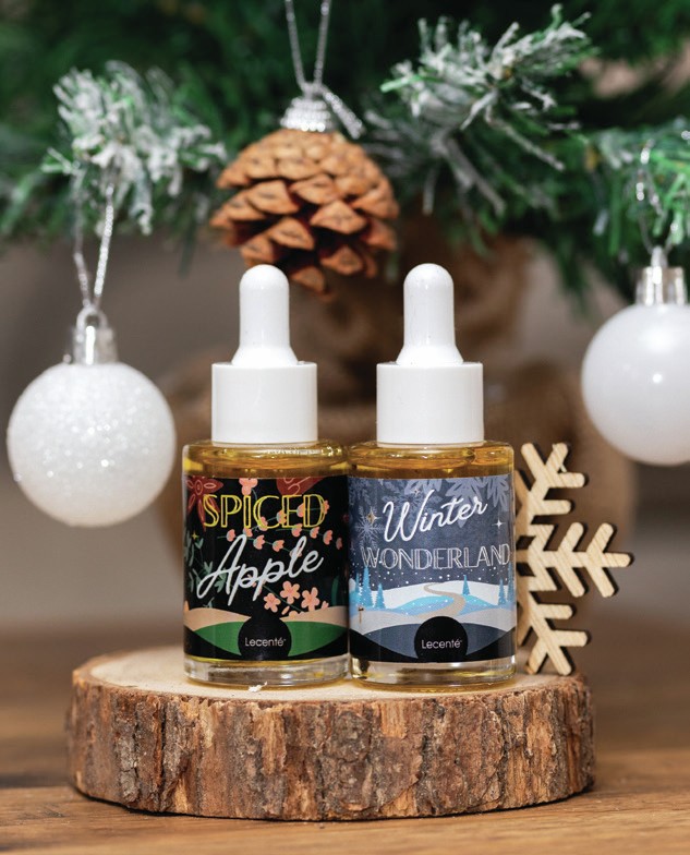 www.lecente.com Lecenté’s festive Cuticle Oils are designed to ignite merriment and cheer on even the darkest winter days. Scents range from Spiced Apple to Snow Fairy and Gingerbread to Winter Wonderland.