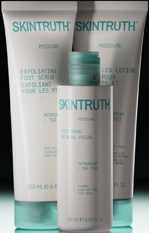 www.salon-services.com Inspired by cryotherapy – the science of cold recovery, SKINTRUTH® ‘reframes its Peppermint & Tea Tree Pedicure Collection as a seasonal ritual with clinical edge’. The Cryo-Christmas Pedicure Kit contains an Exfoliating Foot Scrub, Foot Soak and Leg Lotion to promote seasonal self-care.