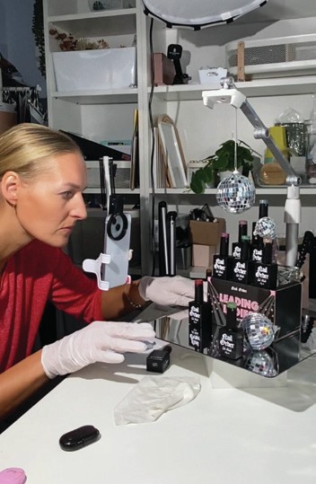 Sadie in 2023 at one of her content creation workshops, but she was on my radar long before that. I remember following her during the first lockdown and loving her Scratch column series. She’s an incredible talent in the nail and content realms, and it’s been inspiring to watch her grow and evolve.