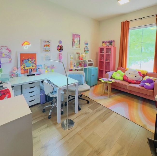 I’ve loved nail art since childhood. I was encouraged by my grandparents to further my artistry from a young age, and they’re a reason behind my success today. I work in a private studio in North Oklahoma City, where I try to create an uplifting and enjoyable experience through maximalist décor and colour choices.