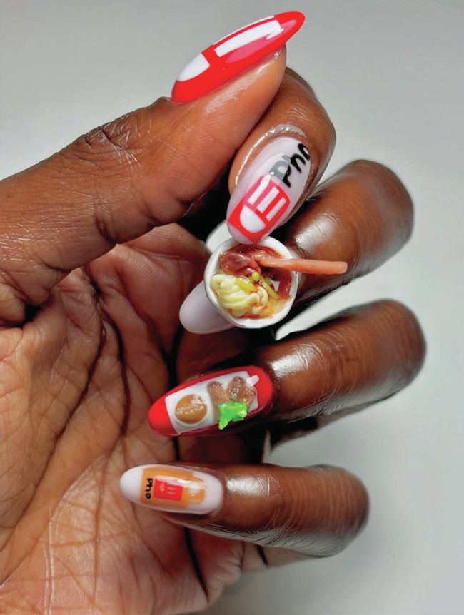 Nail artist & content creator, Kreated By Kae, served up her favourite meal from the Pho restaurant on nails, crafted using SissiClay and featuring shades from The GelBottle Inc.