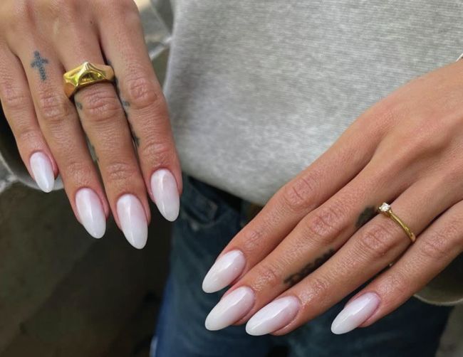 The celeb-approved ‘vanilla French’ manicure was coined by Zola Ganzorigt in 2023, with the nail artist creating the look for the likes of Adele and Kylie Jenner. What makes this trend different to the classic French mani is its softer and creamier white tip.