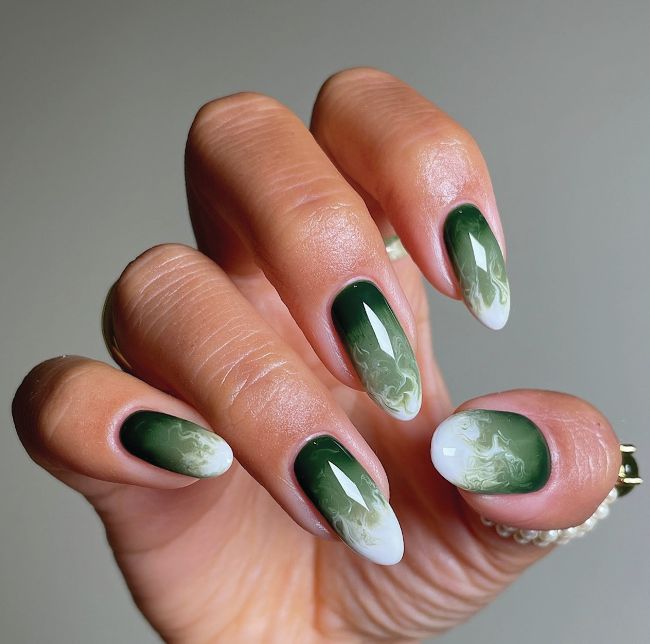 As their name suggests, latte nails feature creamy coffee tones, often with white marble effects to mimic a frothy finish. The trend hasn’t just remained focused on traditional coffees however, as variations like matcha lattes have become trending inspiration for nail looks.