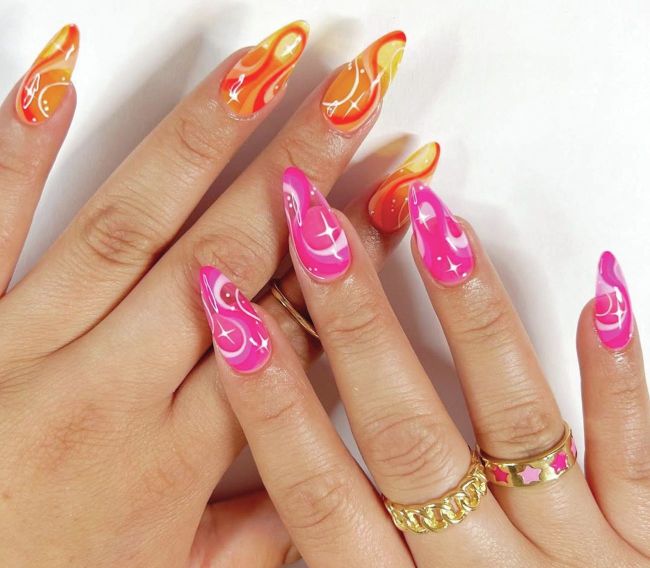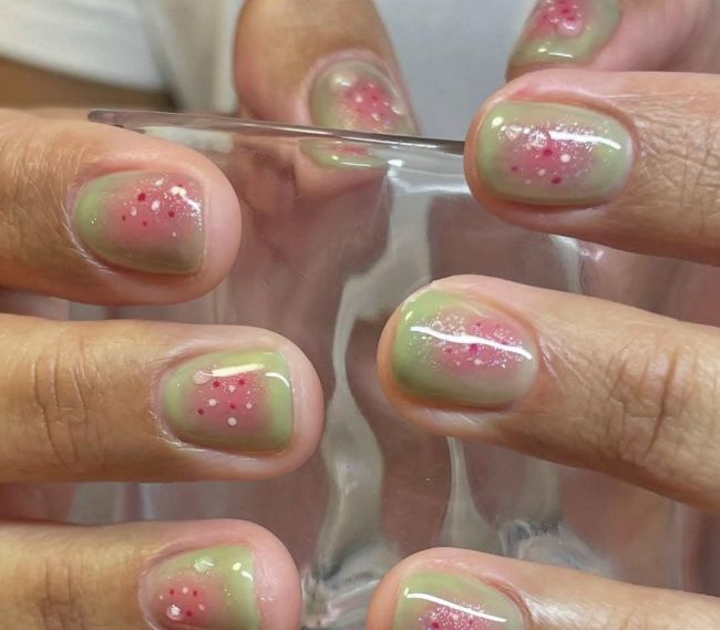 Online searches for ‘guava nails’ skyrocketed this summer when Zola Ganzorigt created a ‘guava glaze’ for actress & singer, Vanessa Hudgens. The guava fruit has light green skin and pink flesh, and nail styles inspired by it often feature the hues with cat eye, jelly and aura effects.
