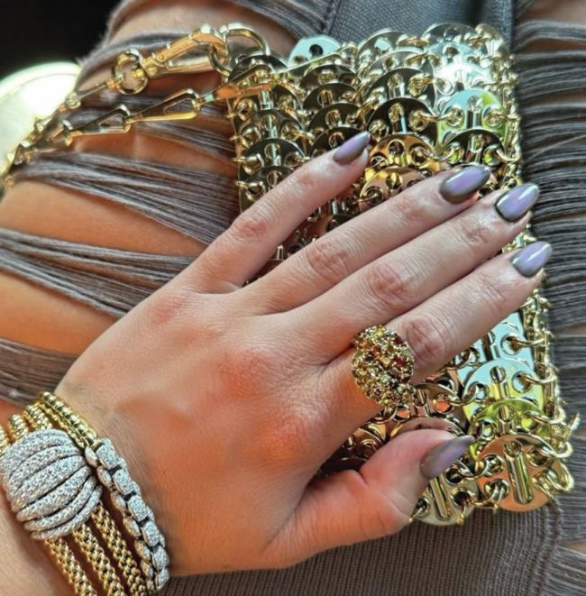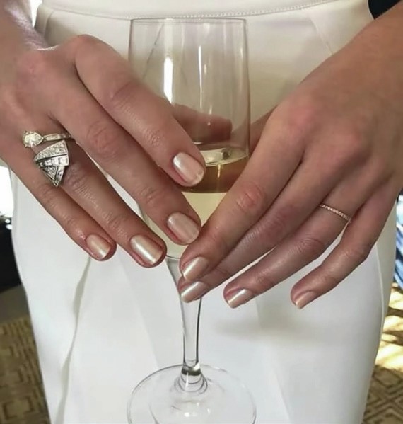 Celebrity manicurist, Tom Bachik, created this pearlescent, polished nail finish for actress, Margot Robbie. He posted the style to Instagram and named it a ‘Toasted Mani’ – ‘one of Fall’s hottest nail looks’.