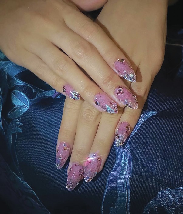 Lisa Manobal, actress & member of girl group, BLACKPINK, stunned with this sparkling nail design. The gem-bellished pink mani was created by celebrity nail artist, Juan Alvear.