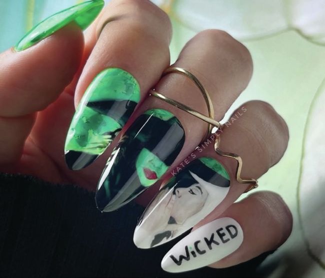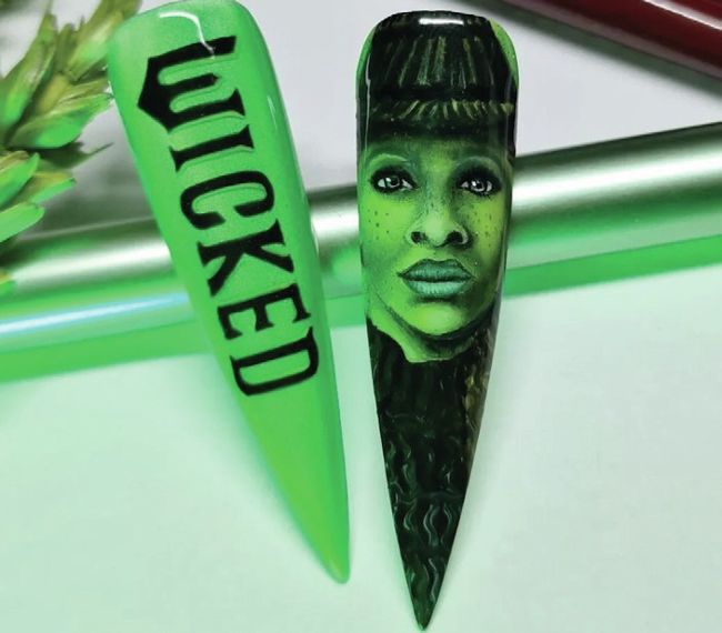 Oh Shiz! Social media nail art star, Madison McCollough (@ballpit_addict), painted Cynthia Erivo as Elphaba using products from her Ballpit nail brand.