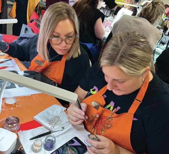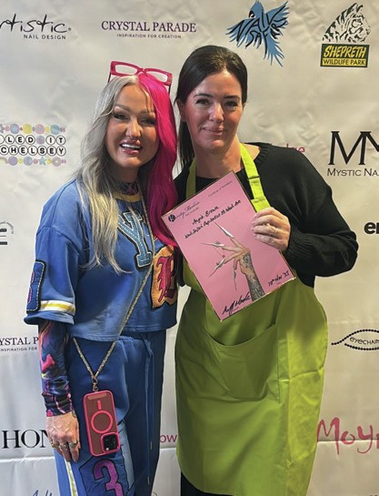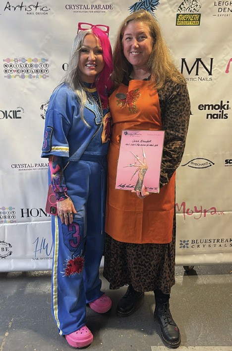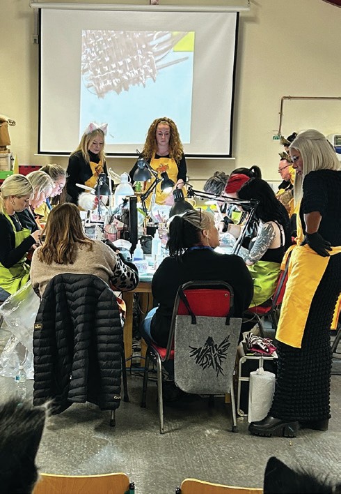 Once rangers settled down for learning, Krista unveiled an extreme nail shape featuring her specialism: a needle. She had created this for the event, so that attendees could achieve a complete extreme look within the six-hour day, and take away ideas for competition work. The educator shared the steps to creating the shape and demoed how to fashion its parts. Delegates followed along using gel or L&P acrylic, before gluing everything together and decorating the enhancement. It was inspiring to witness how rangers encouraged and helped one another, and this community of support was noted by Krista, who commented: “I enjoyed the power that we had together, and there was a really special atmosphere.”