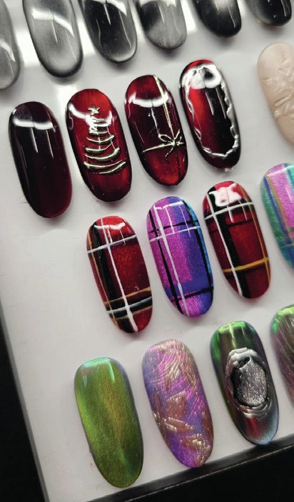 I made my way back to the education centre, and marvelled over the work that had been created over the previous four days. It was then time for the final educator of Nail Safari 2025 to be unveiled: talented, multi award-winning nail artist, judge & consultant, Tracey Lee. She donned themed attire while sharing the history of Chinese nail guards, before showing rangers how to use moulding clay to create their own, then decorate as desired.