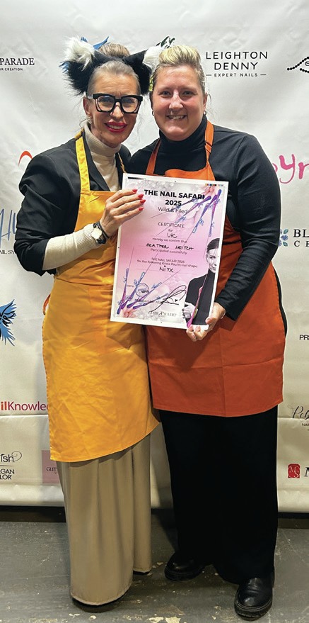 The afternoon session saw the return of award-winning nail stylist, Andreea Simona Ignat, to Nail Safari. She drew an enthusiastic crowd by showcasing how fast forms (also known as dual forms or reusable moulds) can transform a nail tech’s workflow. She covered natural nail analysis, correct form selection, placement, product choice, cure control and troubleshooting, while emphasising how the fast form technique creates refined, structured and uniform enhancements with minimal product waste. Andreea’s calm, clear teaching style made the technique feel achievable for all.