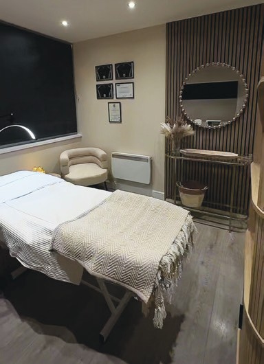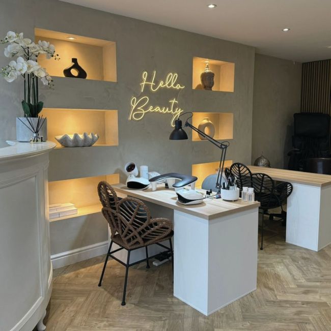 Cutie-cals aims to be a space of relaxation, with a ‘modern-luxe feel’. The décor combines ‘soft neutral tones with warm lighting and natural textures’. Charlotte notes: “Touches of greenery add a welcoming vibe, and the aesthetic is clean and calming, instantly making clients feel comfortable.”