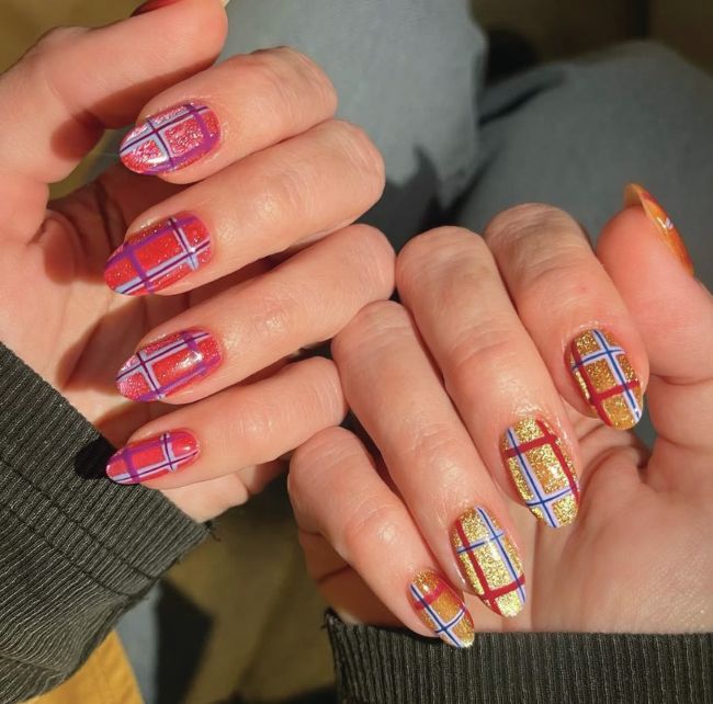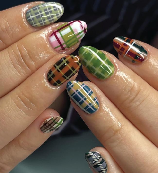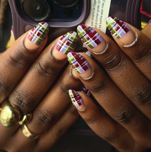 Kylie Jenner showed off a tartan design by celebrity nail artist, Zola Ganzorigt.