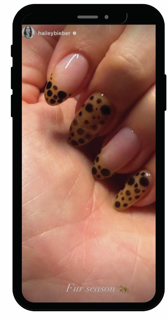 Model & beauty entrepreneur, Hailey Bieber, was spotted sporting blooming gel cheetah nails, courtesy of Zola Ganzorigt. The celeb posted a photo of the design to her Instagram story with the caption: ‘Fur season’.