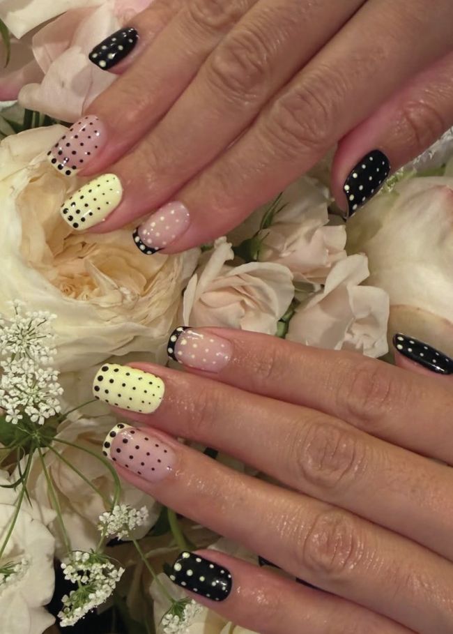 Singer-songwriter, Ella Mai, jumped on the polka dot nail trend, showcasing butter yellow dotty digits by celebrity nail artist, Kim Truong.