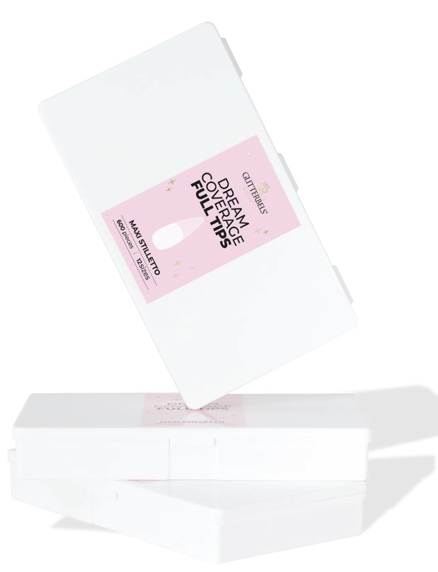 Create striking enhancements at speed with the Glitterbels Dream Coverage system: full cover, pre-shaped tips plus the LiteCure Pen Lamp. The strong, flexible tips are available in Almond, Coffin, Square and Stiletto shapes, in Mini, Midi and Maxi sizes with 12 tip sizes per box. Lightweight, they offer the perfect foundation for gel polish or builder gel overlays. The compact and rechargeable lamp has a flexible arm, long battery life and smart display.