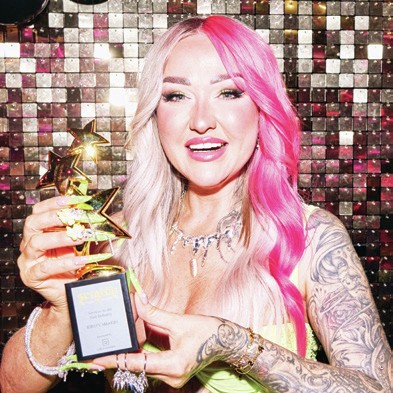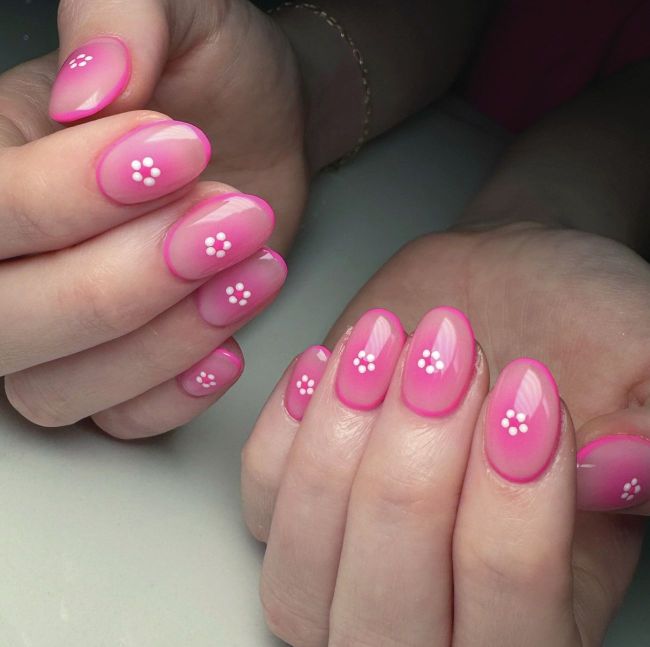 Texas nail tech, Jasmine of @notorioushandjobz, embraces Valentine’s Day with a romantic pink colour palette. She pairs a soft aura style with delicate flowers, created using a dotting tool.