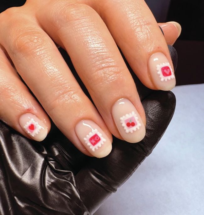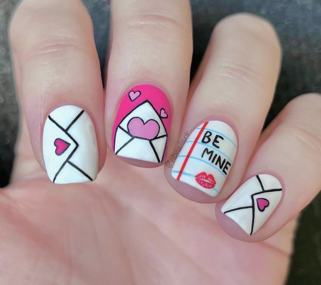 Each nail is a love letter in this style by Bianka of @nbnailart, who used a matte top coat to mimic the paper texture of envelopes.