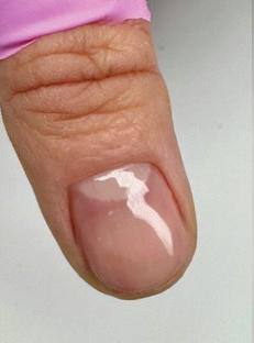 • Hard gel in clear, cover pink and white.