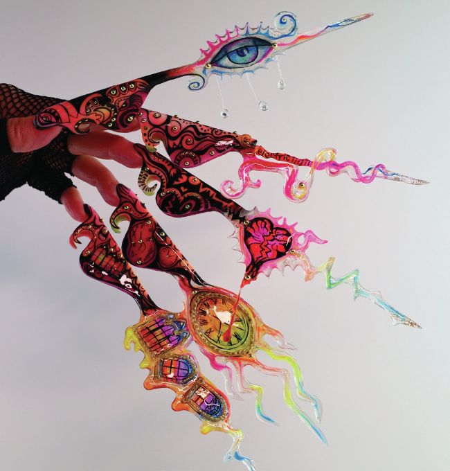 • Colour rendering: advanced use of ombré, marbling, hand-painted art or layered colour techniques to express rhythm and emotional flow.