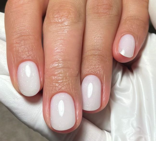 The GelBottle Inc brand ambassador, @kkdnails, embraces the milky white nail trend by using BIAB