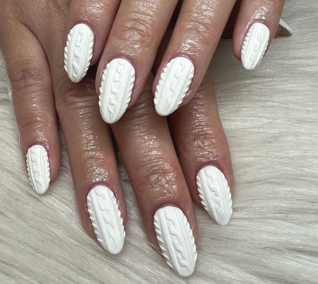 This client of Krystal Arenas (@krys_gogo_nails) embraces sweater season in style via textured cable knit talons with a matte finish.