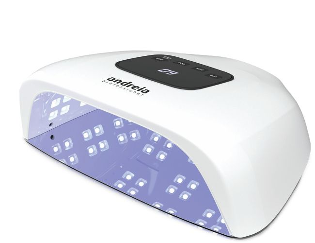 Powerful and thoughtfully engineered, this 180W lamp supports even, consistent cures of Andreia Professional’s gel systems. It features a sensor, removable base and digital timer with 10, 30 and 60-second settings. For clients who experience sensitivity, the low heat mode delivers a progressive curing process, helping to reduce heat sensation while maintaining effective polymerisation. The spacious interior comfortably fits both hands at once.