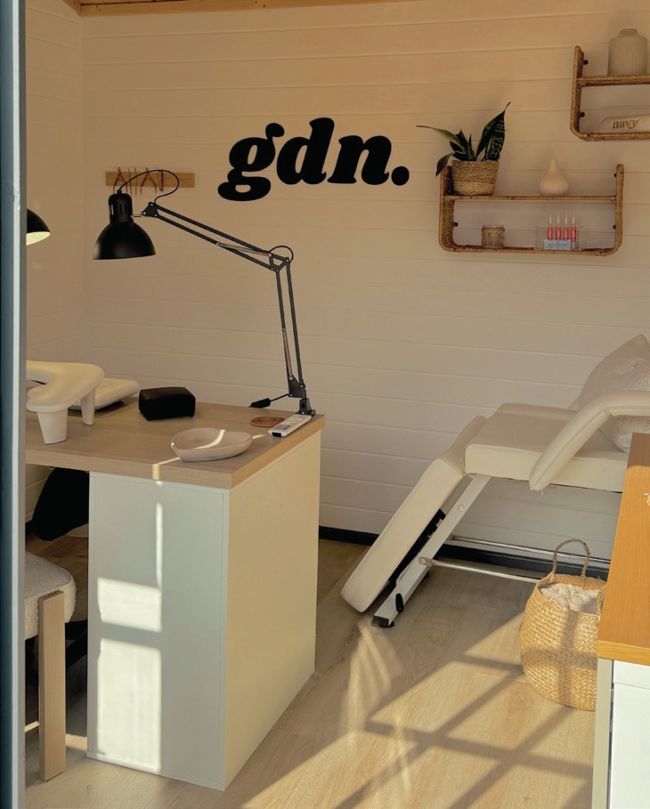 After working as a property manager and discovering her passion for nails during lockdown, Georgia Steel qualified as a nail tech in 2022. She worked in a salon, but a desire for flexibility and balance fuelled her to create a studio in her garden. “I begged my dad to fly home from Australia to build it for me,” she laughs. “He agreed and two weeks later, Georgia Does Nails was ready to welcome clients.”