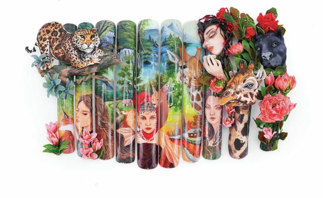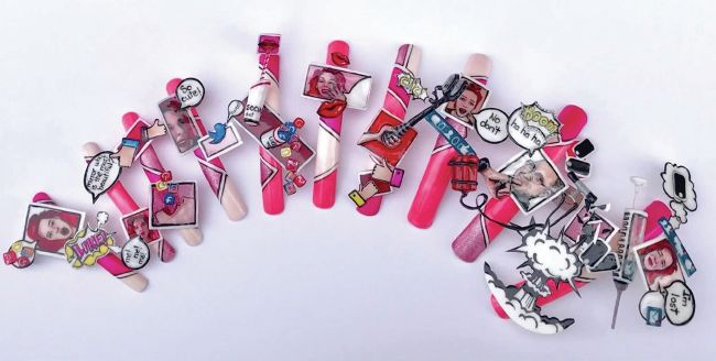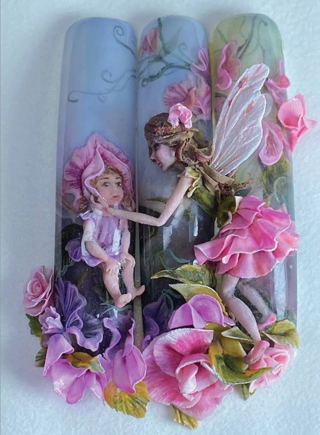 “When creating a mixed media piece, the first thing to consider is its theme. A design should demonstrate the following elements: theme, creativity, balanced composition, complexity and interaction – like a conversation across the nails. Typically, it takes me one month to complete a 10-nail style.”