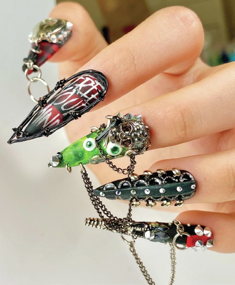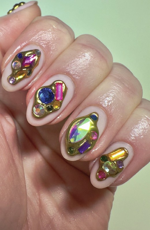 “Another common issue is overloading nails. Without considering weight, structure and balance, designs can become bulky, unstable and visually overwhelming. Successful mixed media work comes from restraint and planning. Every element has a purpose and works together cohesively – both creatively and structurally.”