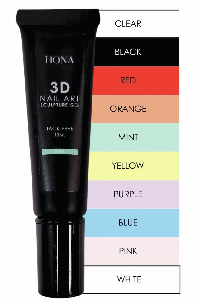 Available in 11 colours, this gel is highly pigmented with a thick viscosity, meaning it holds its shape when manipulated. It is ideal for 3D design creation.